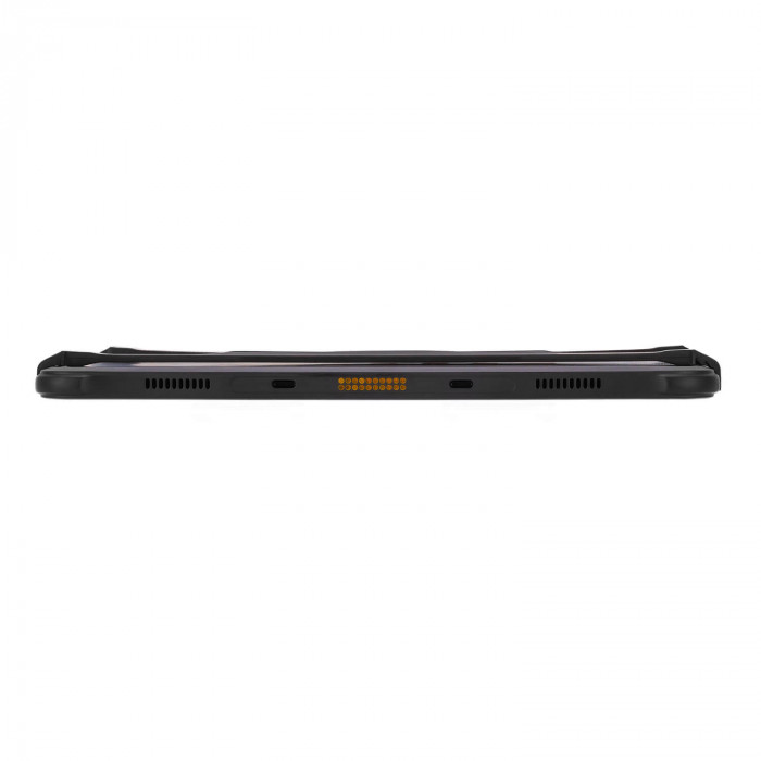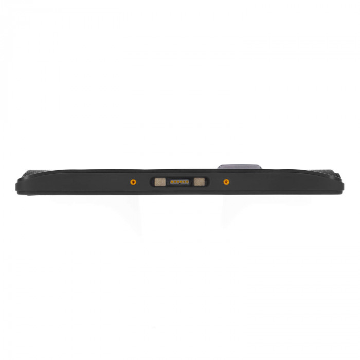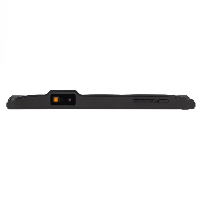 Корпус планшетного компьютера сделан из надежных материалов: поликарбоната и пластика. Он выдерживает большое количество падений с высоты до 1,2 м. Прочное защитное стекло Corning Gorilla защищает сенсорный экран от повреждений. На корпусе есть кнопки промышленного типа: 6 на лицевой панели и 3 на боковой стороне. Степень защиты корпуса: IP65.