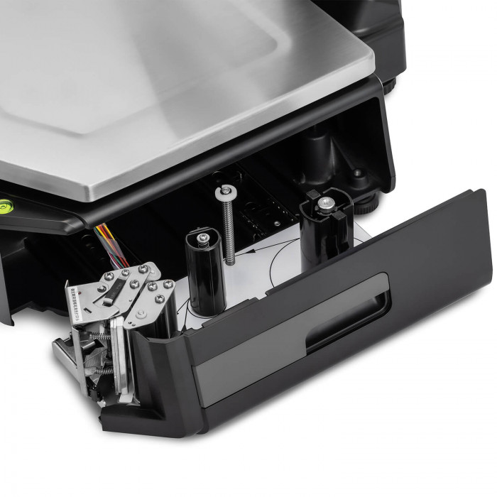 В модели M-ER 727 PM-15.2 принтер установлен под платформой. Он выполняет термопечать с разрешением до 203 DPI. Ширина зоны печати равна 54 мм. Длина этикетки составляет до 90 мм.
